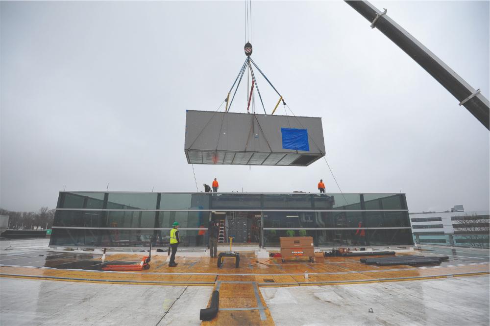 The project faced significant challenges, including damage to two of the four owner-supplied Carrier AHUs during transport, requiring meticulous planning and rapid execution to stay on schedule. The replacement process involved dismantling sections of the roof, walls, and structural steel to remove and install the units, with all four replaced in a single shift using two 125-ton and two 500-ton cranes. Adverse weather on March 6, 2024, added further complexity, but through extensive pre-planning, coordination with the owner and subcontractors, and precision scheduling, the team ensured all units were operational by March 9, avoiding delays that could have pushed the project to December. Controls integration and testing continued through April, demonstrating exceptional expertise and teamwork.